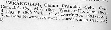 The Rev Wrangham and his entry in the 1937 Crockfords